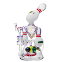 The Christmas Tree w/ Candy Cane Dab Rig stands 7.25 inches (18.4m) tall and is crafted in the shape of a festive Christmas tree with forest critters, a candy cane mouthpiece, and glow in the dark accents. Made of quality borosilicate glass, this dab rig has a fixed downstem and includes a 14mm male quartz banger.